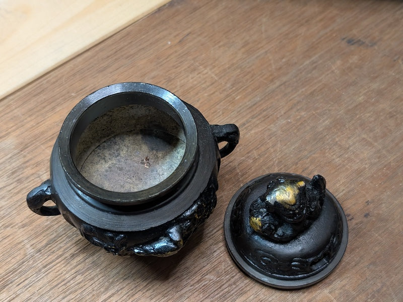 Authentic Japanese Bronze Incense Burner – 1950s Shishi Foo Lion Design