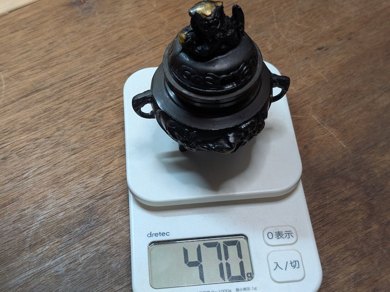 Elevate your meditation or spiritual practice with this authentic Japanese bronze incense burner, crafted in the 1950s. This beautifully detailed piece features a Shishi (Foo Lion) guardian on top, symbolizing protection and good fortune in Buddhism.