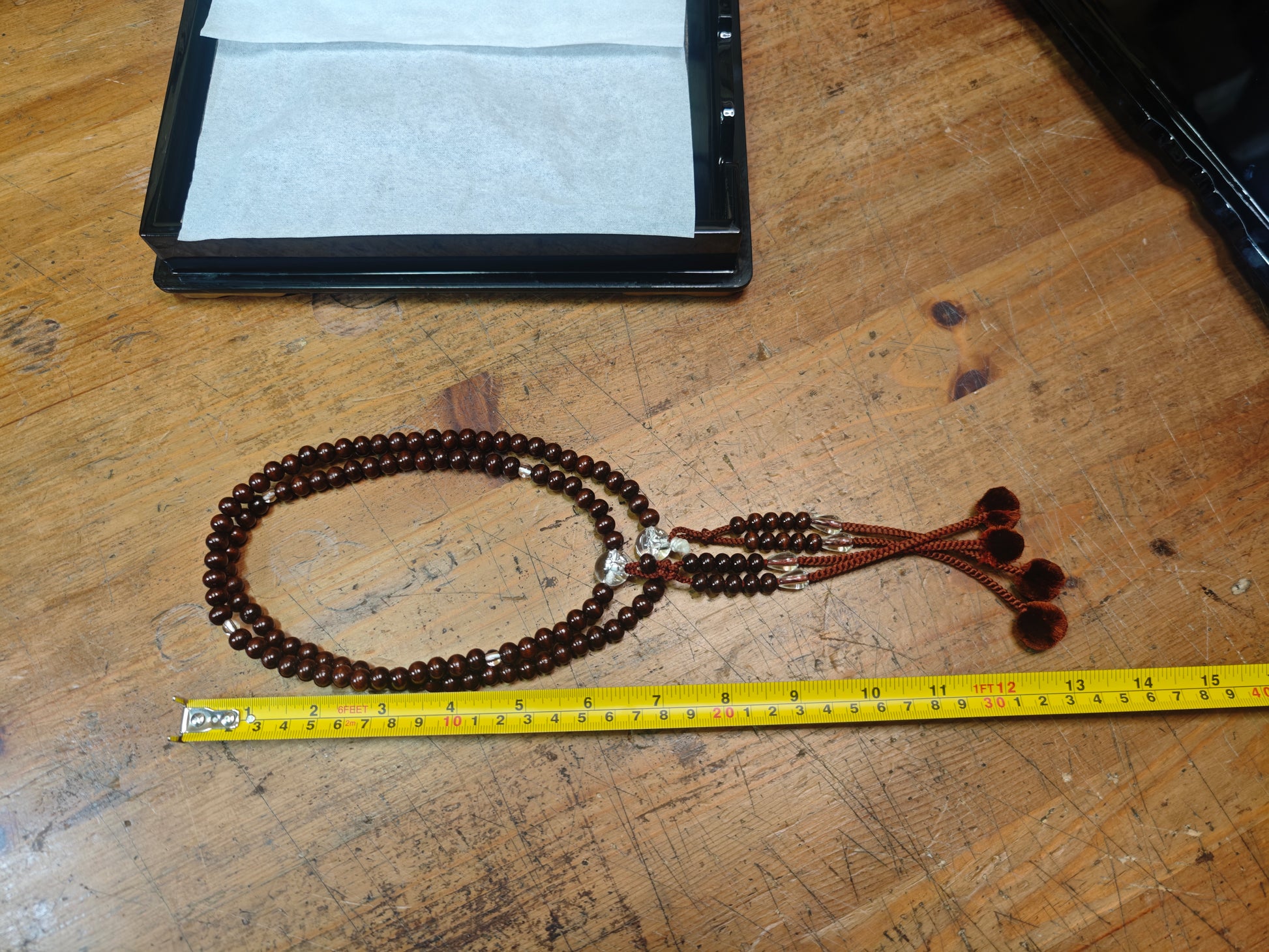 - Material: Paper, wood, unknown natural bead material